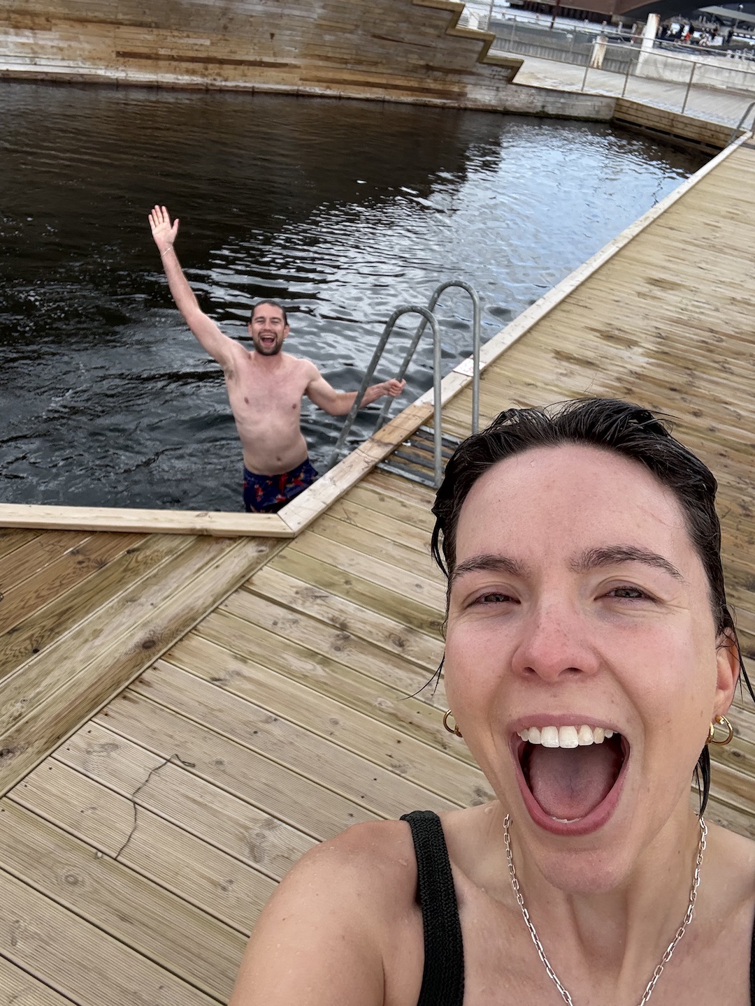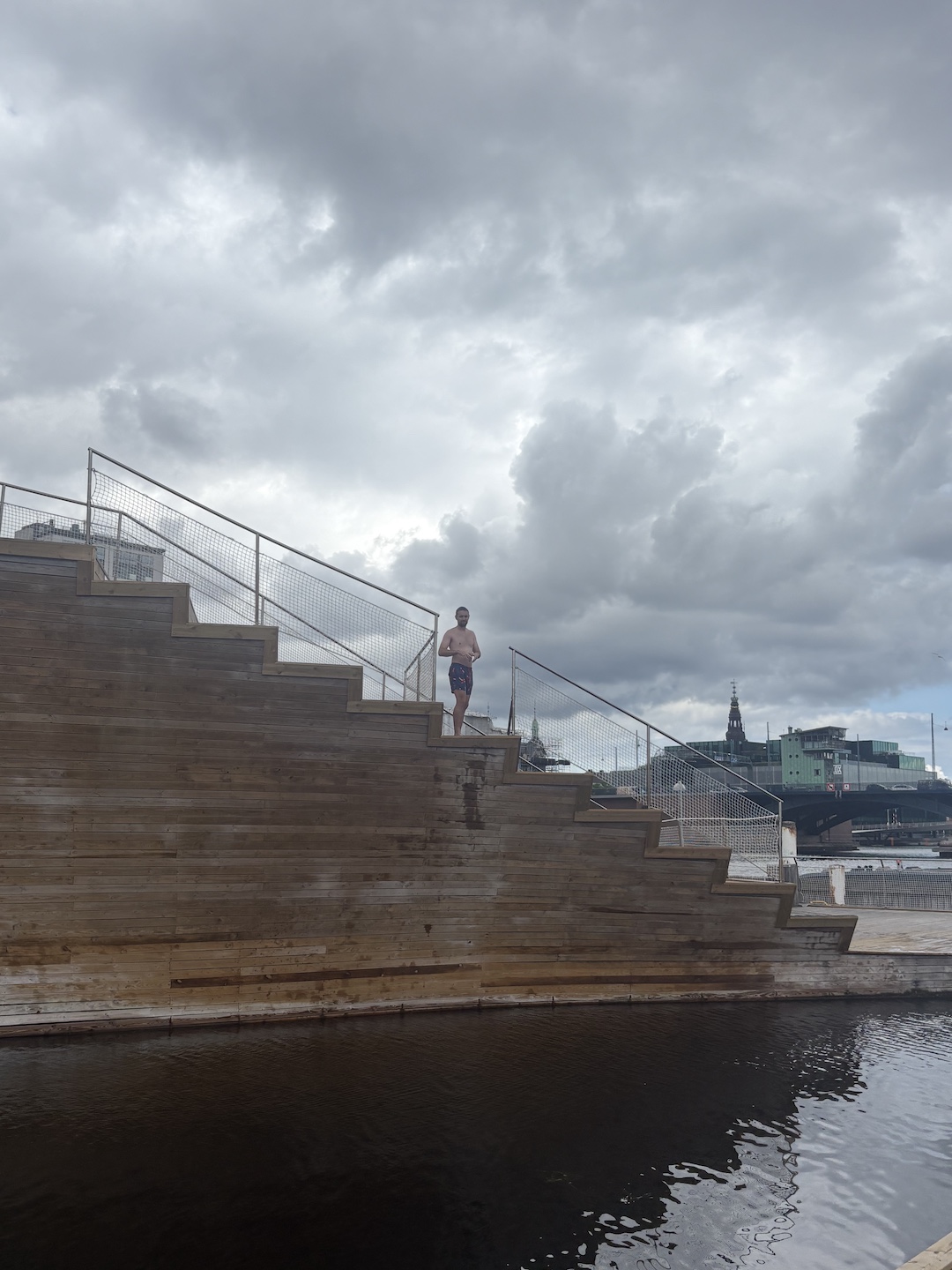 The company we used allowed you to grab a bike, which you could then lock and reserve for later use. Our major stop was to Islands Brygge Havnebad, a public swimming platform. Despite it being overcast and ever slightly nippy, Jo and I were going in. Copenhagen has a lot of these public swimming spots, which on hot summer days I can imagine being quite busy. Being the aforementioned slightly nippy, overcast day, we had no issue finding a spot for the towels.