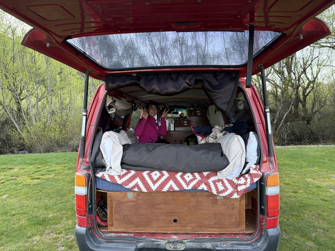 The van set up for our first night in Kinloch