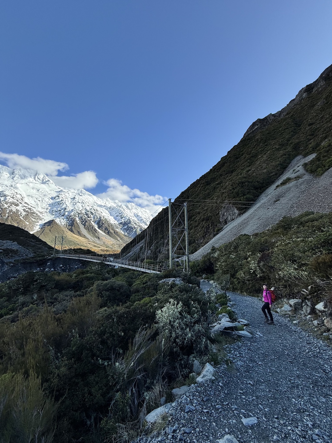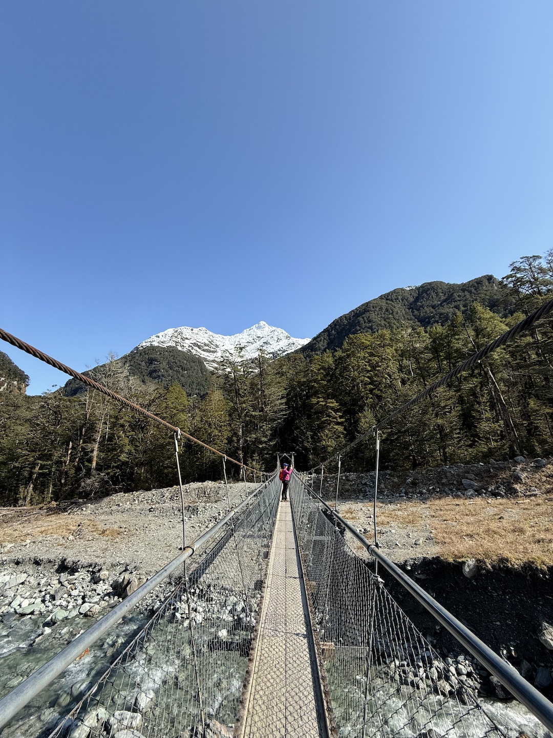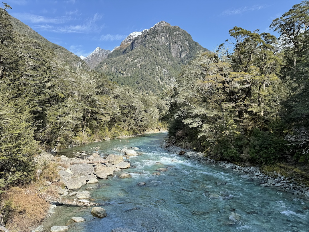 The walk was stunning. Crossing about 5 suspension bridges, there’s nothing I can compare it to in Australia. You walk along the Routeburn River, with its glacial blue water streaming below the towering peaks above.