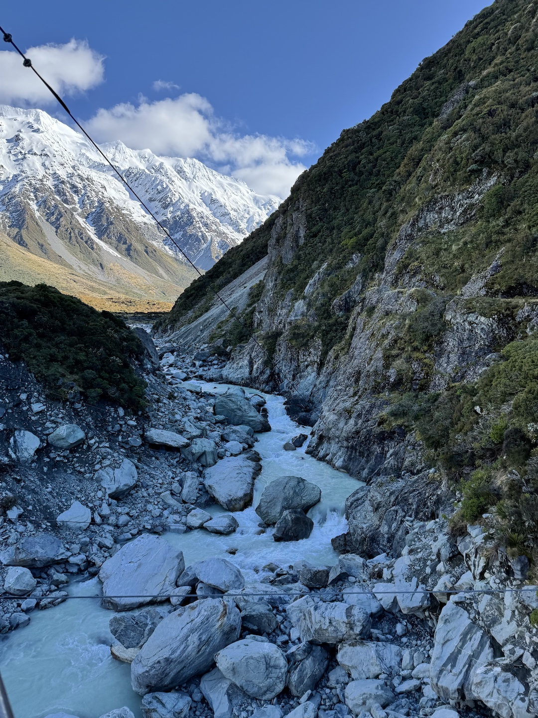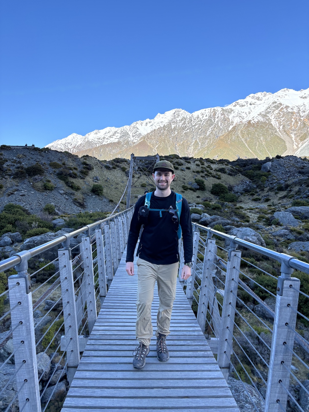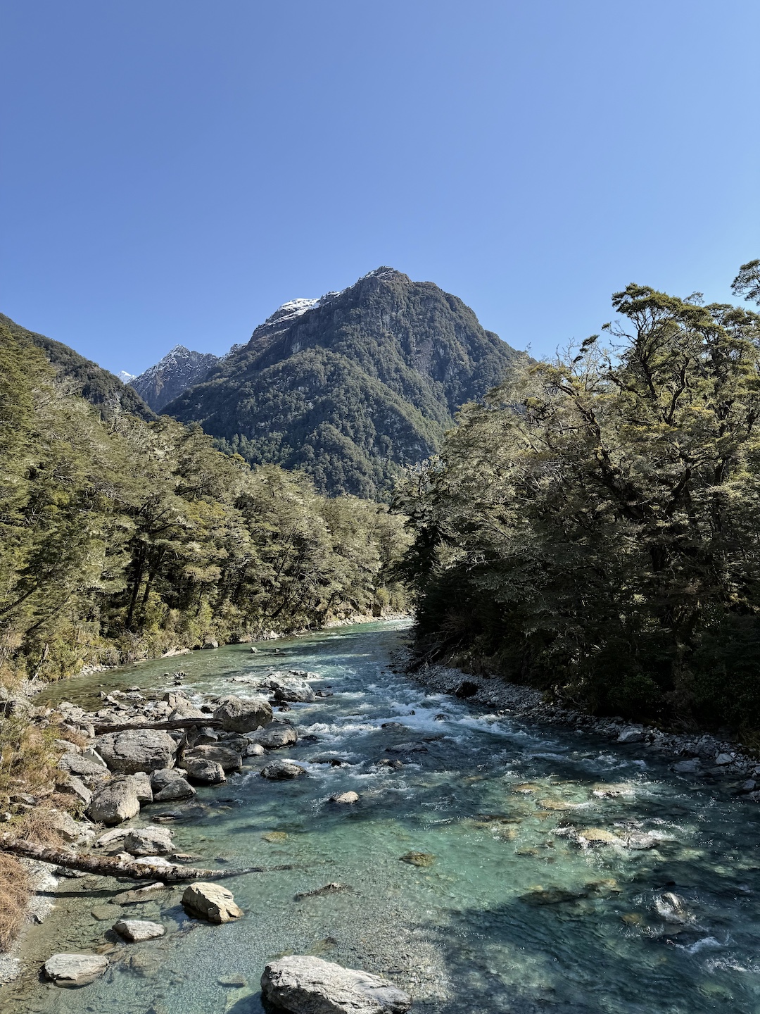 The walk was stunning. Crossing about 5 suspension bridges, there’s nothing I can compare it to in Australia. You walk along the Routeburn River, with its glacial blue water streaming below the towering peaks above.