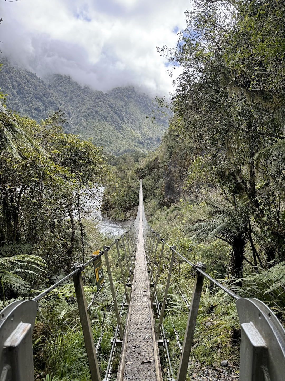 Arriving in FJ, we headed straight for the glacier. I have previously flown up to the glacier on a walking tour, but this time we were going for the Robert’s Point walking track. This would turn out to be one of the sketchiest bush walks I’ve ever done. Crossing waterfalls and walking up sheer creek flows meant you were switched on the whole time. Not only that, but there were 3-4 suspension bridges to cross, some of which had weight limits (one only held 1x adult!). On top of this, there was a sign at the very start featuring newspaper clippings of recent deaths on the walk.